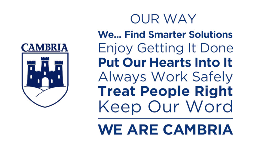 “Our company charter serves as the guiding roadmap for our team. These principles have been instrumental in Cambria’s success over the past 30 years. We encourage new and existing team members to enhance and integrate values into their daily interactions with colleagues, clients, and subcontractors”. Spencer G. Lavis